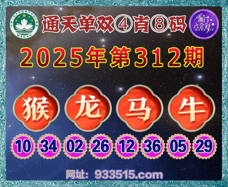 312期:『通天单双』 🏆④肖⑧码🏆【猴马牛】开:龙14