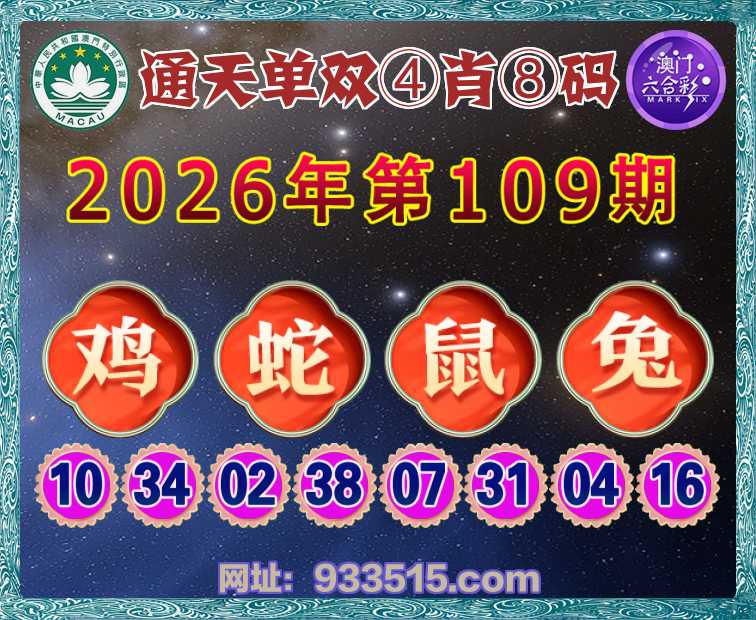109期:『通天单双』 🏆④肖⑧码🏆【鸡蛇鼠兔】开:00准