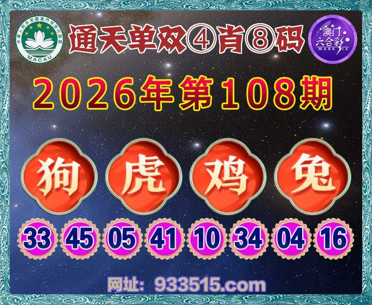 108期:『通天单双』 🏆④肖⑧码🏆【虎鸡兔】开:狗45